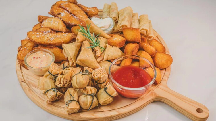 With sweet chili and Sour cream sauce. Suitable for Vegetarian.