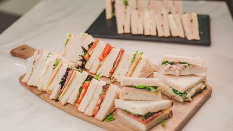 32 pieces with assorted fillings. ( Ham and cheese, chicken…